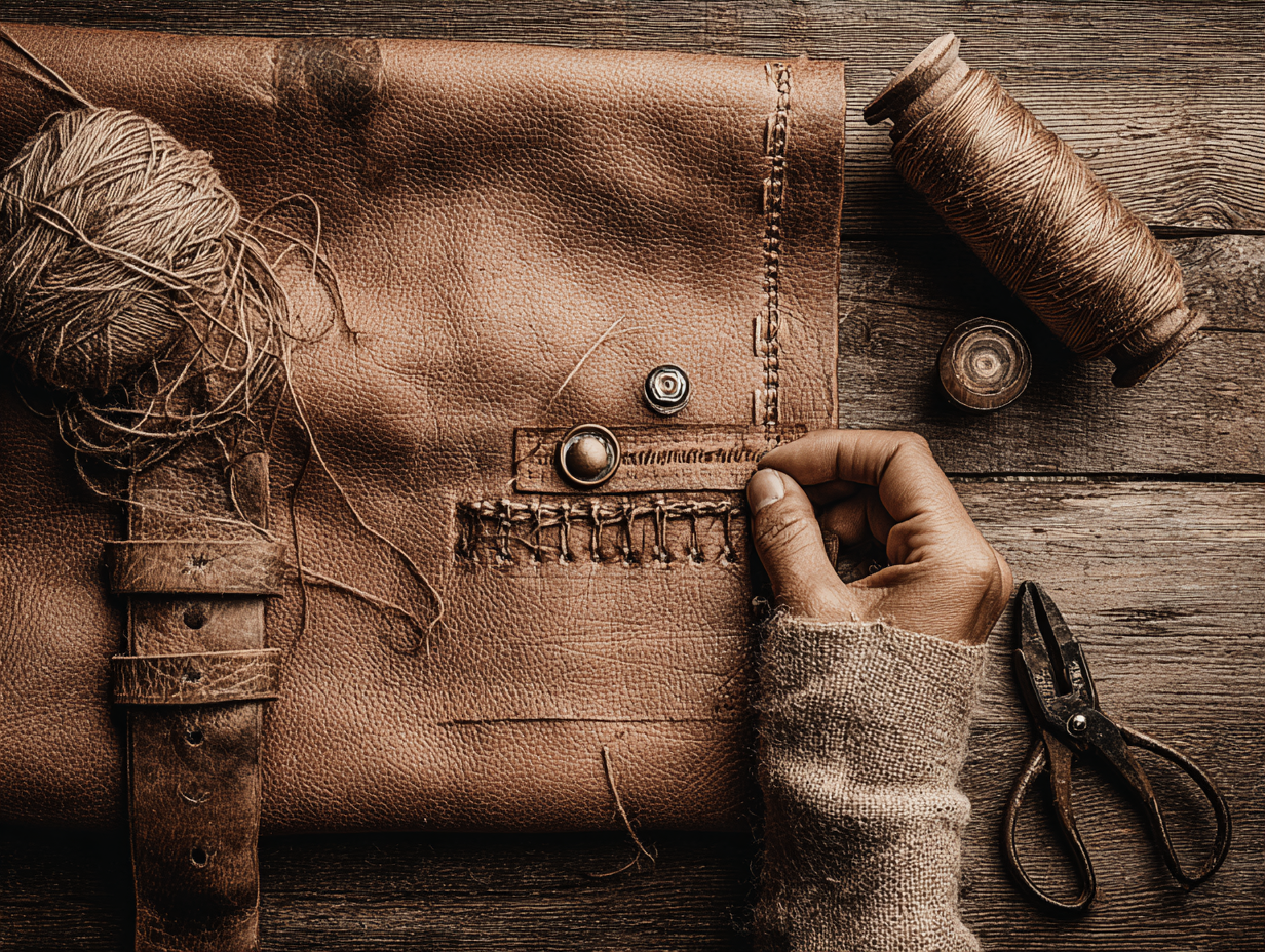 Техника работы складывается из нескольких ключевых навыков. Первый — разметка и пробивание отверстий под шов. Сложите и склейте детали по краям, затем с помощью линейки и разметчика наметьте линию строчки. По этой линии с равным интервалом (4-5 мм) пробивайте отверстия шилом или используйте гребенчатый штемпель, который создает несколько отверстий за один удар молотка. Второй навык — ручное сшивание. Классикой является сапожный (седельный) шов — он не только красив, но и невероятно прочен. Для него используют два иглы и вощеную нить: иглы пропускают в одно отверстие с противоположных сторон, нити затягиваются, создавая характерный «косичный» рисунок. Для более простых швов подойдет и прямая двухниточная строчка. Главное — не торопиться и следить за равномерным натяжением. Третий навык — работа с фурнитурой. Установка клепок и пикселей (кнопок) требует аккуратности: точно разместите детали, пробейте отверстие нужного диаметра, вставьте ножку и с помощью специальной насадки и молотка аккуратно расклепайте ее с изнаночной стороны.